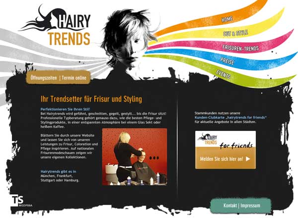 Konzeption und Gestaltung des kompletten Internetauftritts der Friseurkette Hairy Trends.
